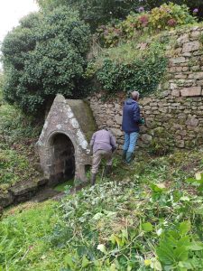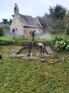 Une matinée deux chantiers à la chapelle de Prad-Paol et au lavoir de Kervolan. La chapelle a récemment été rénovée, elle est encore plus belle dans son écrin de verdure.