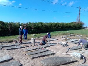 Comme depuis quelques années PHA prête main forte à leurs collègues d’Iliz-Koz, il y avait du boulot de sarclage à réaliser pour rendre le lieu présentable aux visiteurs, la météo était de la partie.