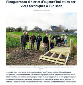 Plouguerneau d’Hier et d’Aujourd’hui (PHA) et les services techniques se sont associés pour mettre en valeur le patrimoine naturel de la commune dans le bas de la coulée verte. Un pont a été mis en place au dessus du ruisseau.
