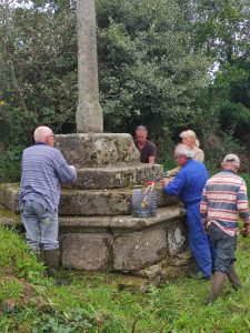 Nous étions 6 Mardi pour nettoyer le lavoir de Keroudern qui en avait bien besoin et rafraichir quelques croix vers Sainte Anne
