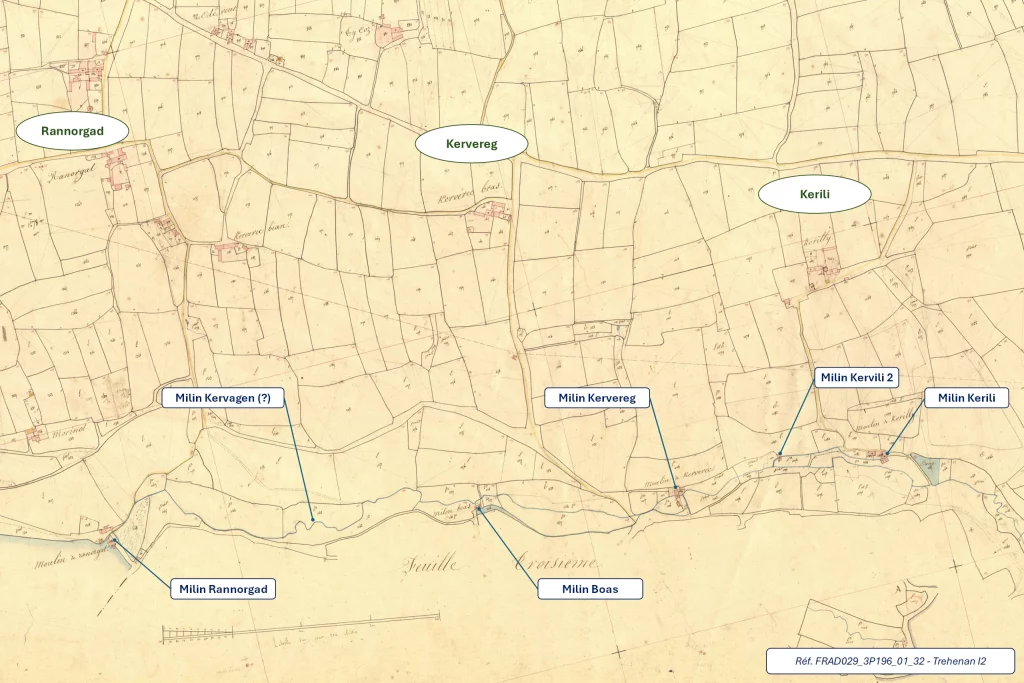 - Milin Kervagen (n’apparait pas sur le cadastre, mais présente de ruines caractéristiques)