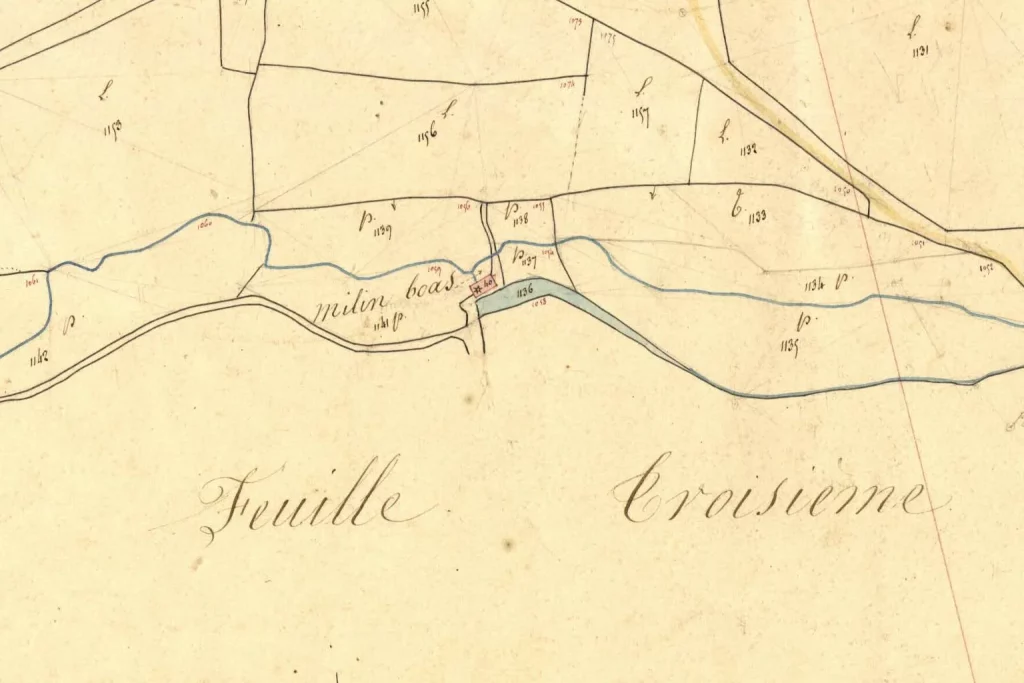 Les moulins ayant presque tous disparus il nous faut nous plonger dans les archives pour en retrouver la trace ; le cadastre est là d’une aide précieuse.