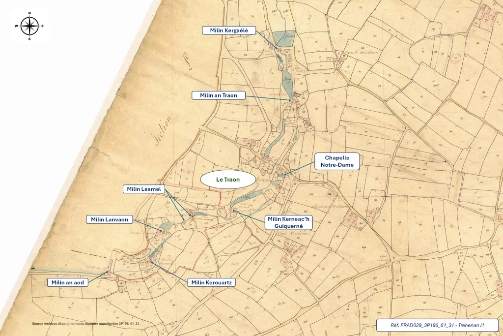 9 moulins sont identifiés sur le cadastre au Traon :